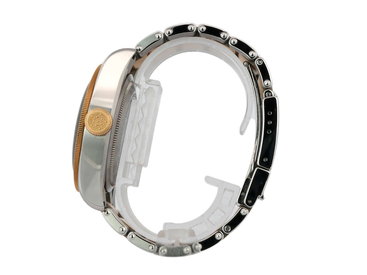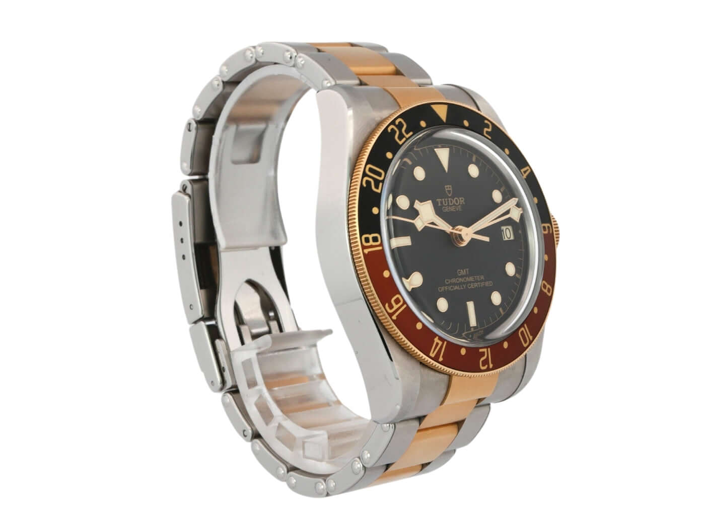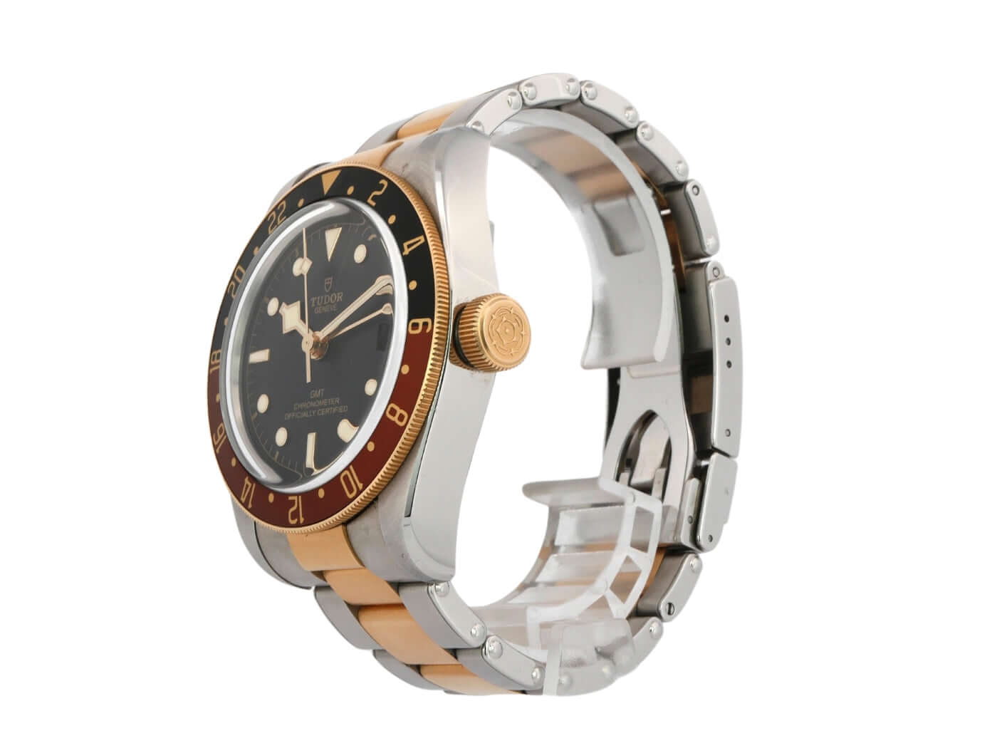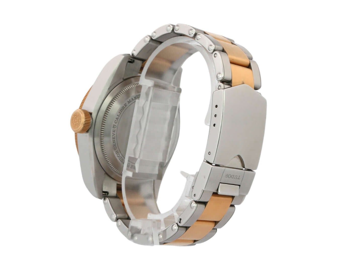 Gehäuse aus Edelstahl poliert und satiniert, Gehäusedurchmesser 41 mm, Gehäusehöhe 14,6 mm, Gelbgold Lünette mit schwarz/brauner Einlage, 24 Stunden Skala beidseitig drehbar, schwarzes Zifferblatt mit aufgesetzten Leuchtindizes, Leuchtzeiger, Edelstahl/ Gelbgoldband mit Sicherheitsfaltschließe, Uhrwerk Automatik, Manufakturkaliber Tudor MT5652, 70 Stunden Gangreserve, Chronometer, GMT, Datum, verschraubte Krone, Saphirglas, Edelstahlboden verschraubt und graviert, wasserdicht bis zu 20 bar.