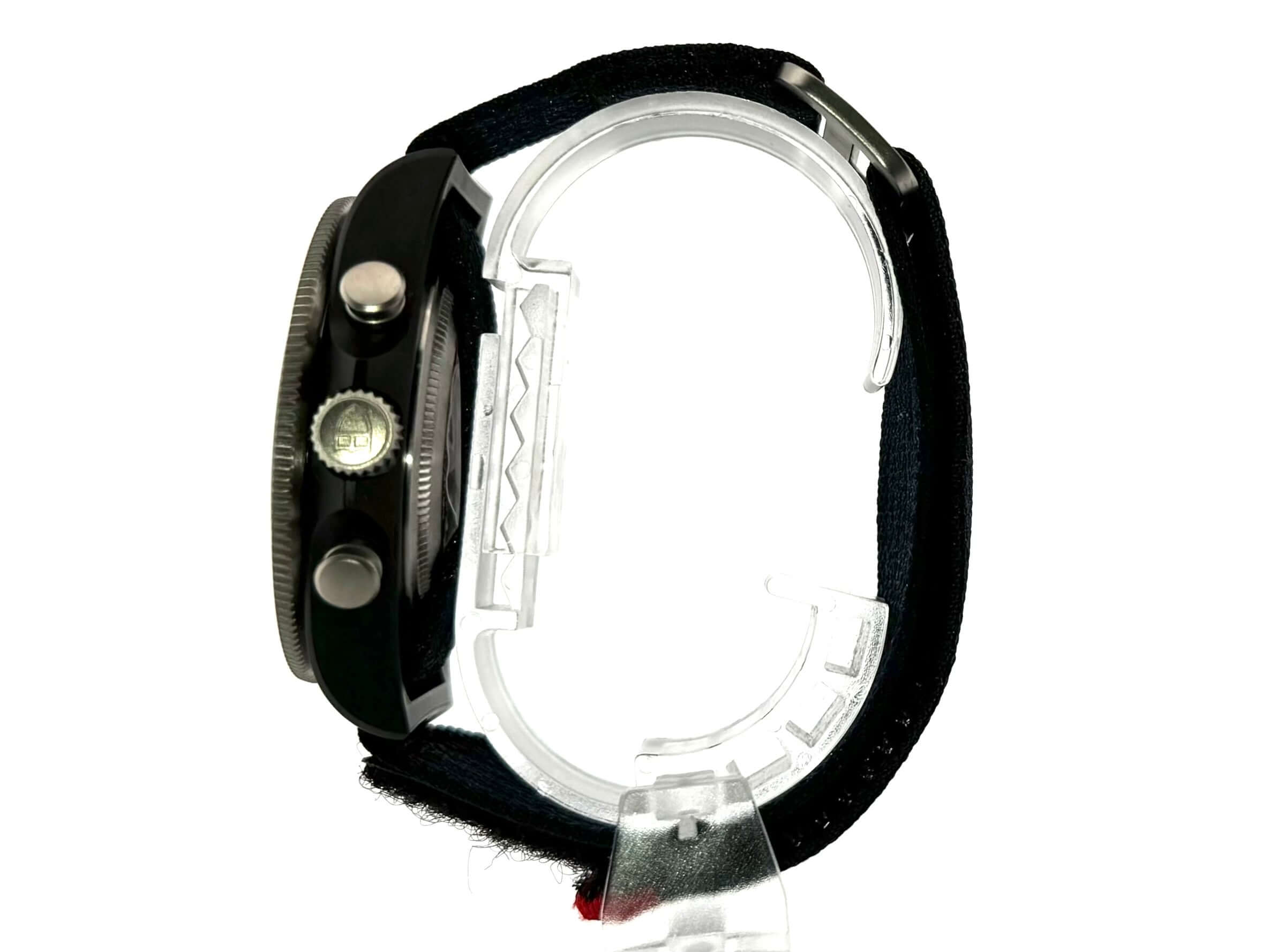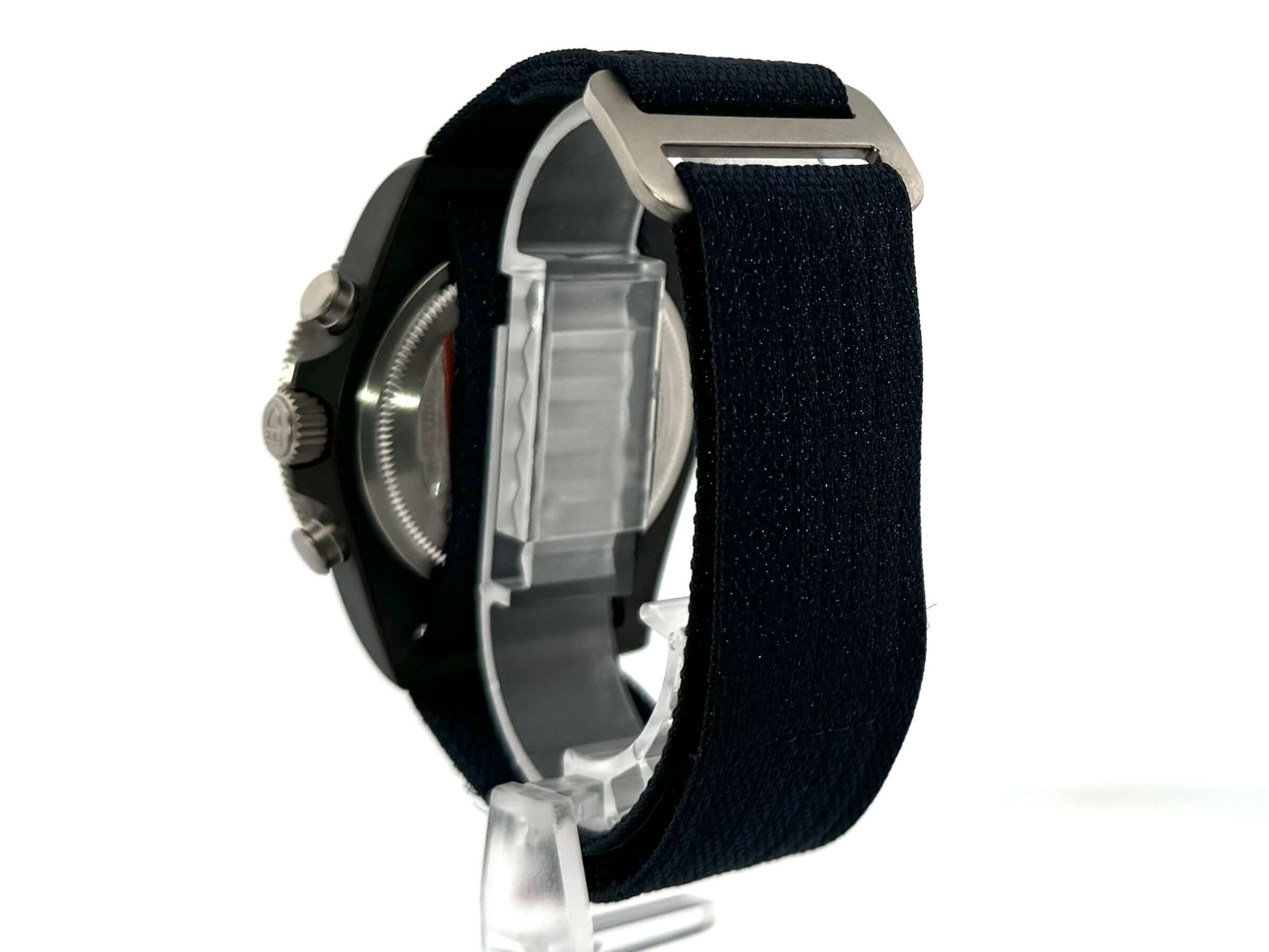 Gehäuse aus Carbon satiniert, Gehäusedurchmesser 43 mm, Gehäusehöhe 13,6 mm, Titan Lünette mit schwarzer Carbon Einlage, 60 Minuten Skala mit Leuchtpunkt und drehbar, blaues Textilband mit Klettschließe, blaues Zifferblatt mit aufgesetzten Leuchtindizes, Leuchtzeiger, Automatik, Tudor MT5813, Datum, Chronograph, Chronometer, Saphirglas, Krone verschraubbar mit Flankenschutz, Titan Boden verschraubt und graviert, Wasserdicht bis zu 20 bar.