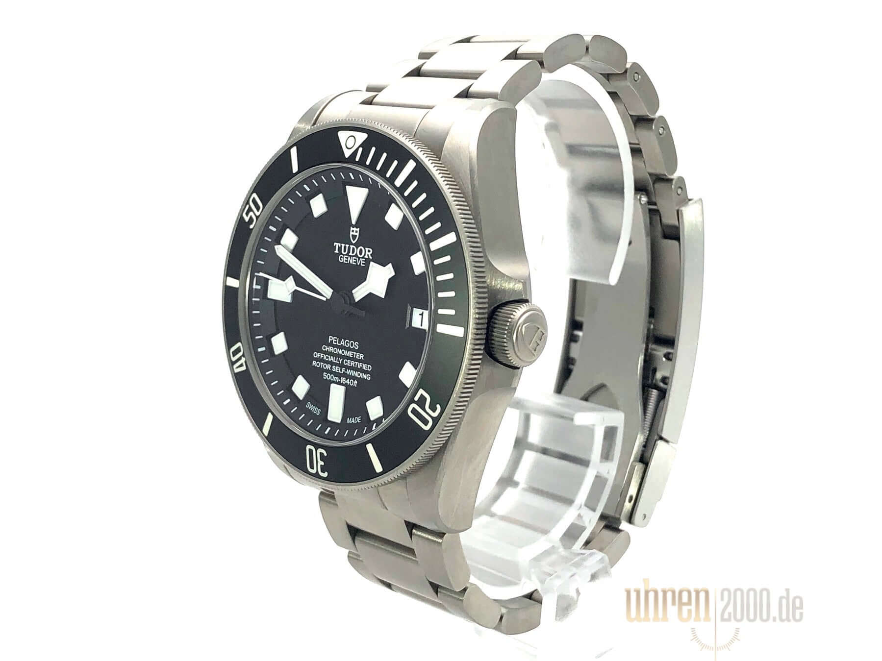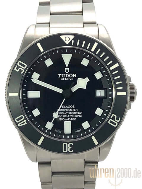 Gehäuse aus Titan satiniert, Gehäusedurchmesser 42 mm, Gehäusehöhe 14 mm, Titan Lünette mit schwarzer Keramik Einlage, 60 Minuten Skala mit Leuchtpunkt und drehbar, Heliumventil, satiniertes Titan Armband mit Sicherheitsfaltschließe und Taucherverlängerung, extra schwarzes Kautschukarmband mit Stiftschließe, schwarzes Zifferblatt mit aufgesetzten Leuchtindexen, Leuchtzeiger, Uhrwerk Automatik, Tudor MT5612, Datum, Chronometer, Saphirglas, Krone verschraubbar mit Flankenschutz, Titan Boden verschraubt und graviert, Wasserdicht bis zu 50 bar.