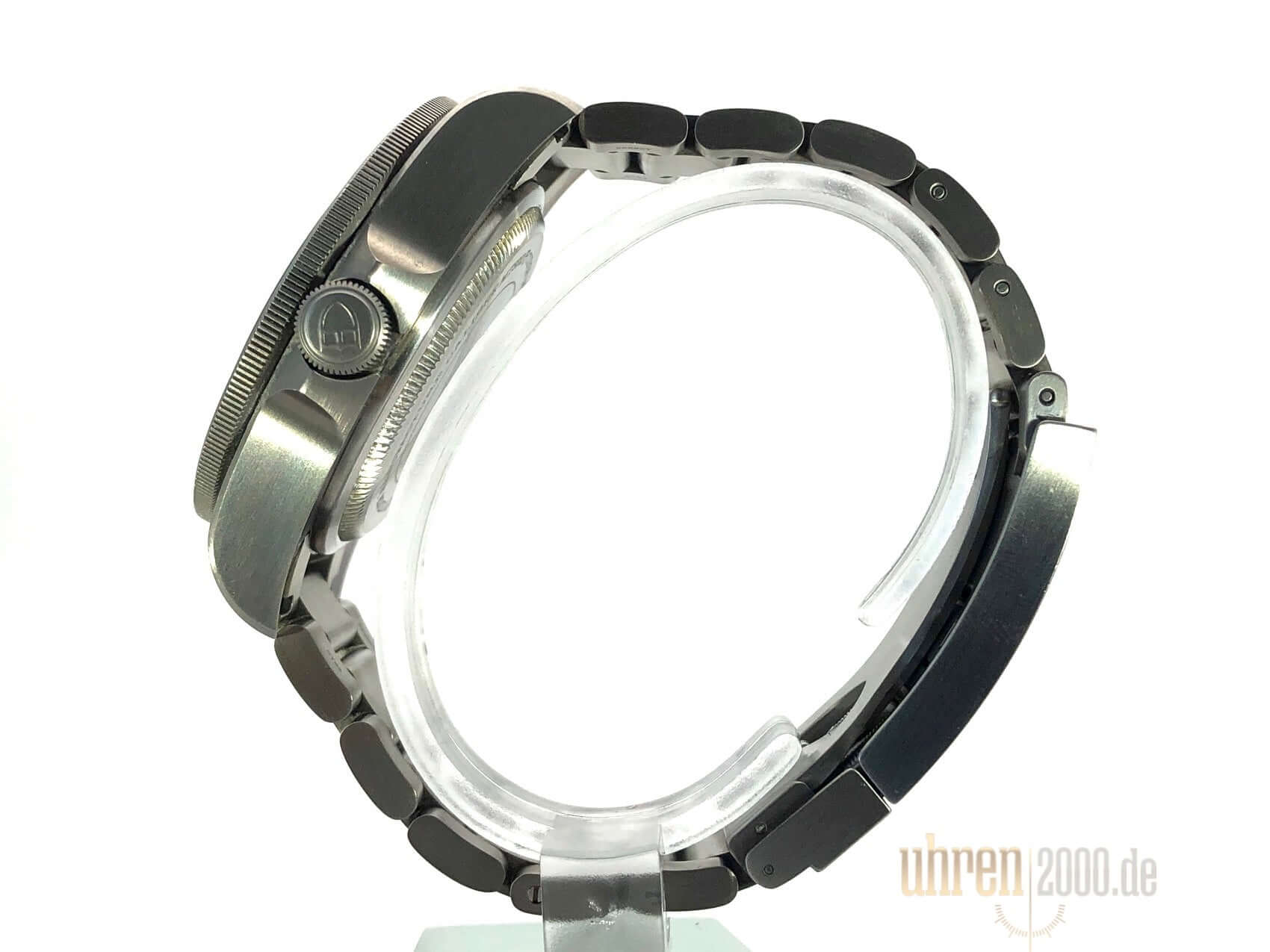 Gehäuse aus Titan satiniert, Gehäusedurchmesser 42 mm, Gehäusehöhe 14 mm, Titan Lünette mit blauer Keramik Einlage, 60 Minuten Skala mit Leuchtpunkt und drehbar, Heliumventil, satiniertes Titan Armband mit Sicherheitsfaltschließe und Taucherverlängerung, extra Kautschukarmband Blau mit Stiftschließe, Zifferblatt Blau mit aufgesetzten Leuchtindexen, Leuchtzeiger, Uhrwerk Automatik, Tudor MT5612, Chronometer, Datum, Saphirglas, Krone verschraubbar mit Flankenschutz, Titan Boden verschraubt und graviert, Wasserdicht bis zu 50 bar.