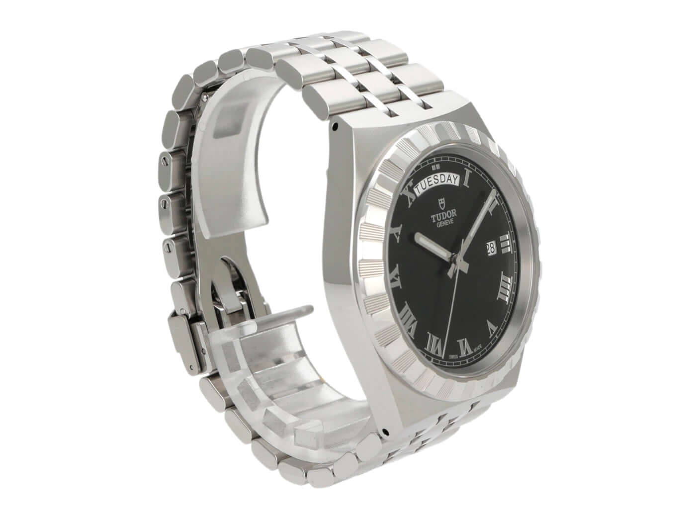 Gehäuse aus Edelstahl poliert und satiniert, Gehäusedurchmesser 41 mm, Edelstahl Lünette geriffelt, Edelstahlband mit Faltschließe, schwarzes Zifferblatt mit römischen Ziffern, Automatik, Tudor T603, Gangreserve für 38 Stunden, Datum, Wochentag, Saphirglas, Gehäuseboden Edelstahl verschraubt, wasserdicht bis zu 10 bar.