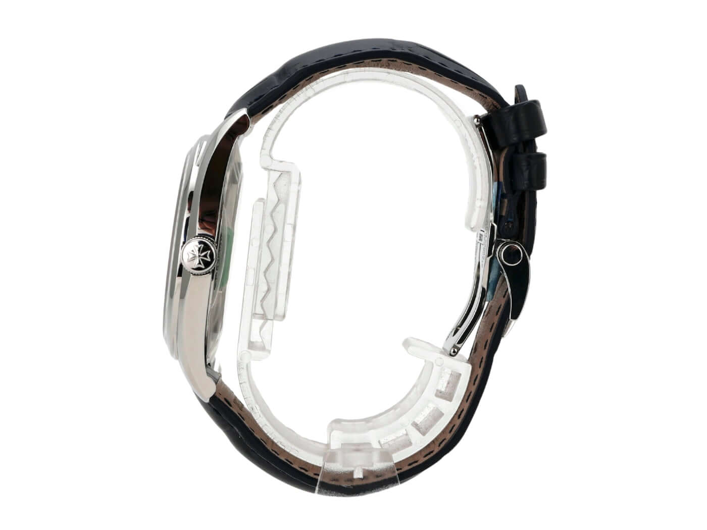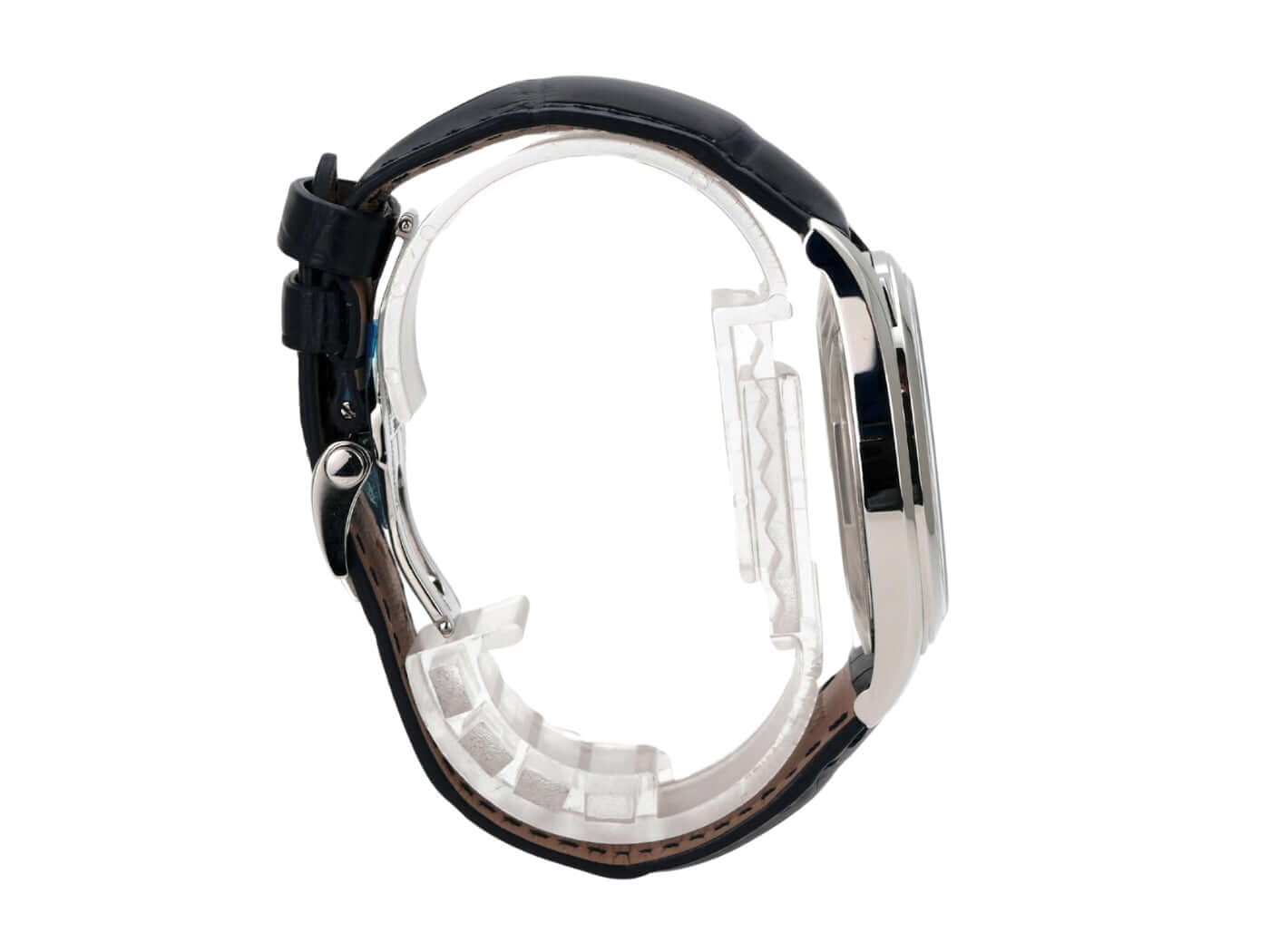 Gehäuse aus Edelstahl poliert und satiniert, Gehäusedurchmesser 40 mm, Gehäusehöhe 9,6 mm, Edelstahl Lünette poliert, blaues Lederband mit Faltschließe, blaues Zifferblatt, Automatikwerk, Manufakturkaliber 1326 mit 25 Steine, Schwingung 28.800 A/h, Gangreserve für ca. 48 Stunden, Datumsanzeige, kratzfestes Saphirglas, verschraubter Sichtboden, wasserdicht bis zu 3 bar.