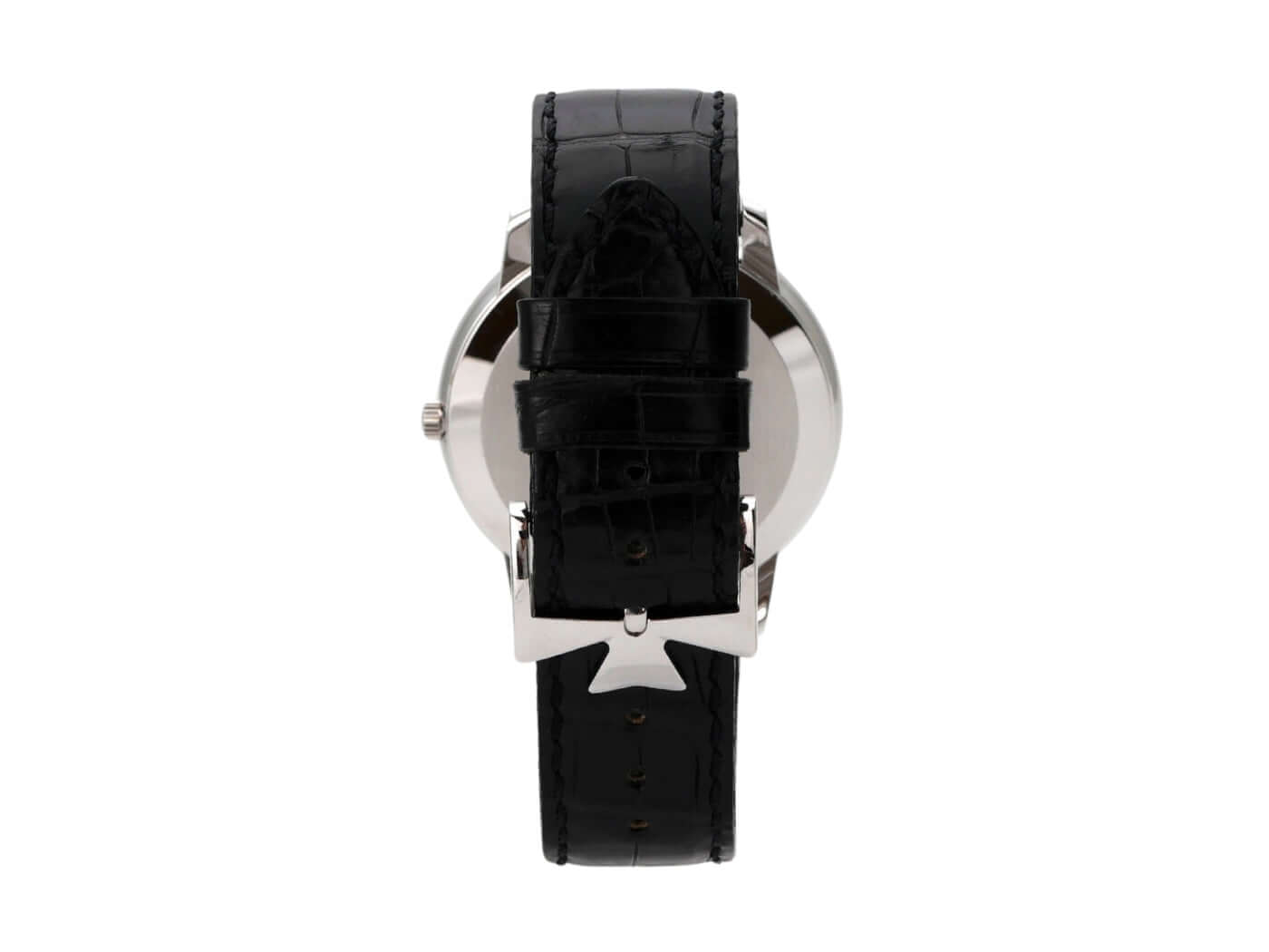 Gehäuse aus 18 kt Weißgold poliert und satiniert, Gehäusedurchmesser 40 mm, Gehäusehöhe 6,8 mm, Weißgold Lünette poliert, schwarzes Lederband mit Weißgold Dornschließe, silberfarbenes Zifferblatt, Handaufzugwerk, Manufakturkaliber 1400 mit 20 Steine, Schwingung 28.800 A/h, Gangreserve für ca. 40 Stunden, Genfer Punze, kratzfestes Saphirglas, verschraubter Weißgoldboden, wasserdicht bis zu 3 bar.