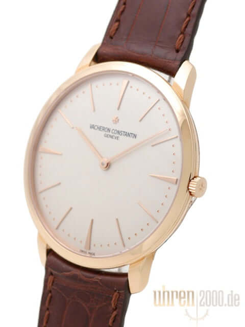 Gehäuse aus 18 kt Rotgold poliert und satiniert, Gehäusedurchmesser 40 mm, Gehäusehöhe 6,8 mm, Rotgold Lünette poliert, braunes Lederband mit Dornschließe, silberfarbenes Zifferblatt, Handaufzugwerk, Manufakturkaliber 1400 mit 20 Steine, Schwingung 28.800 A/h, Gangreserve für ca. 40 Stunden, Genfer Punze, kratzfestes Saphirglas, verschraubter Rotgoldboden, Wasserdicht bis zu 3 bar.